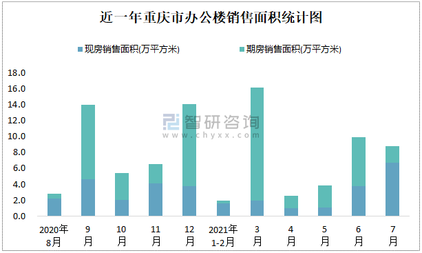 根據國家統計局數據可知:2021年7月重慶市辦公樓銷售面積為8.81萬平方米(其中銷售現房6.74萬平方米,期房2.07萬平方米);2021年1-7月重慶市辦公樓累計銷售面積為43.3萬平方米;近一年重慶市辦公樓期房銷售面積遠高于現房銷售面積,2021年7月四川、廣東、江蘇的辦公樓銷售面積最多,江蘇、上海、浙江、廣東的辦公樓現房銷售面積高于其他各省市。