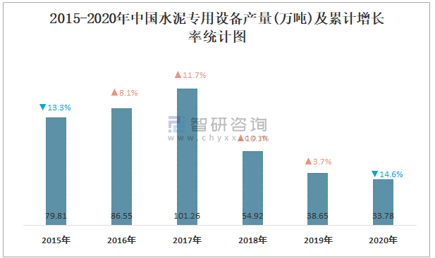 2015-2020年中國(guó)水泥專(zhuān)用設(shè)備產(chǎn)量及增長(zhǎng)率統(tǒng)計(jì)圖
