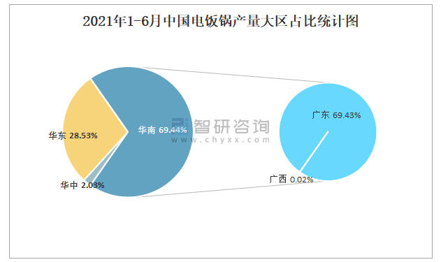 2021年1-6月中國電飯鍋產量大區占比統計圖