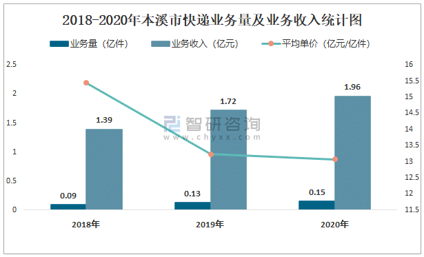 2018-2020年本溪市快遞業(yè)務(wù)量及業(yè)務(wù)收入統(tǒng)計(jì)圖
