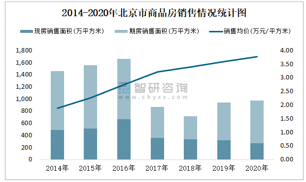 2014-2020年北京市商品房銷售情況統(tǒng)計圖