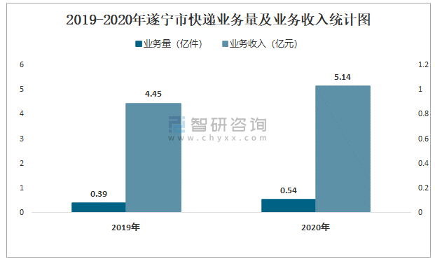 2019-2020年遂寧市快遞業(yè)務(wù)量及業(yè)務(wù)收入統(tǒng)計圖