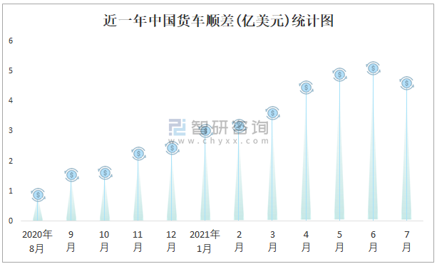 近一年中國(guó)貨車順差(億美元)統(tǒng)計(jì)圖