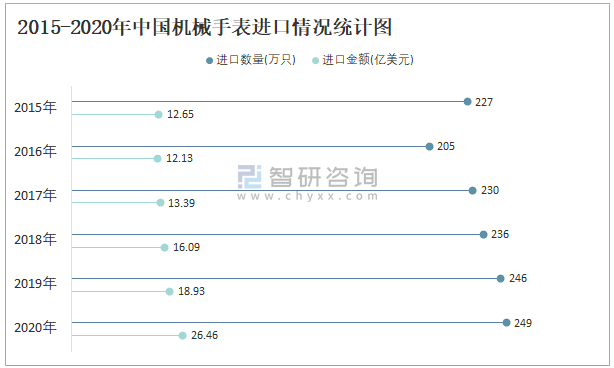 2015-2020年中國(guó)機(jī)械手表進(jìn)口情況統(tǒng)計(jì)圖