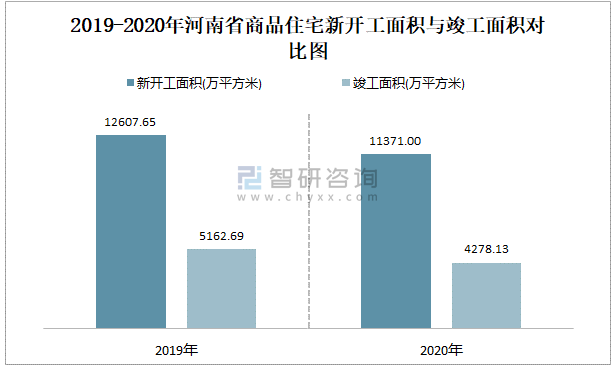 2019-2020年河南省商品住宅新開工面積與竣工面積對比圖
