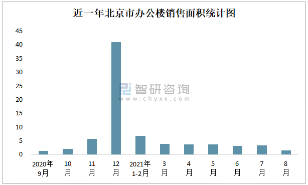 近一年北京市辦公樓銷售面積統計圖