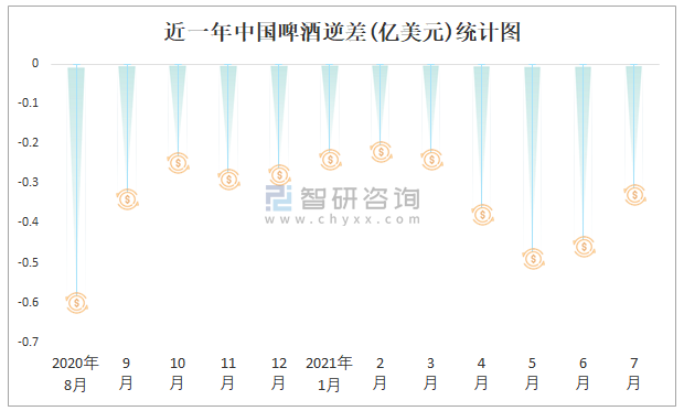 近一年中國(guó)啤酒逆差(億美元)統(tǒng)計(jì)圖