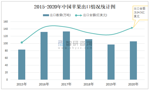 2015-2020年中國蘋果出口情況統(tǒng)計(jì)圖