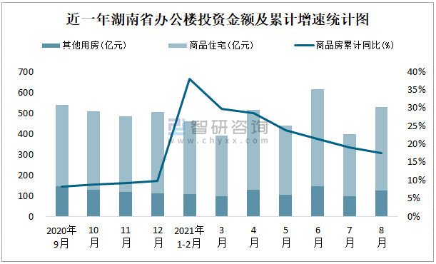 根據(jù)國(guó)家統(tǒng)計(jì)局?jǐn)?shù)據(jù)統(tǒng)計(jì)可知:2021年1-8月湖南省房地產(chǎn)開(kāi)發(fā)企業(yè)在包括辦公樓在內(nèi)的其他用房投資金額占比為24.1%(注:只有投資金額中其他用房包含辦公樓、商業(yè)營(yíng)業(yè)用房),辦公樓的新開(kāi)工面積與竣工面積所占比重差異不大,從銷(xiāo)售面積來(lái)看,辦公樓銷(xiāo)售面積占比少于商業(yè)營(yíng)業(yè)用房銷(xiāo)售面積占比。