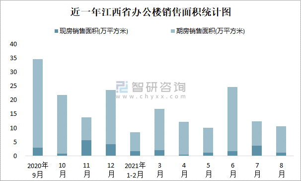 根據(jù)國家統(tǒng)計局數(shù)據(jù)可知:2021年8月江西省辦公樓銷售面積為10.58萬平方米(其中銷售現(xiàn)房1.07萬平方米,期房9.51萬平方米);2021年1-8月江西省辦公樓累計銷售面積為95.18萬平方米;近一年江西省辦公樓期房銷售面積遠高于現(xiàn)房銷售面積。