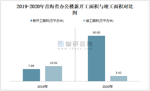 2019-2020年青海省辦公樓新開工面積與竣工面積對比圖