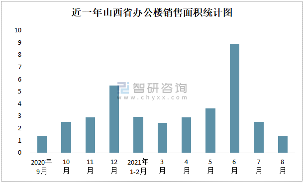 近一年山西省辦公樓銷售面積統(tǒng)計圖