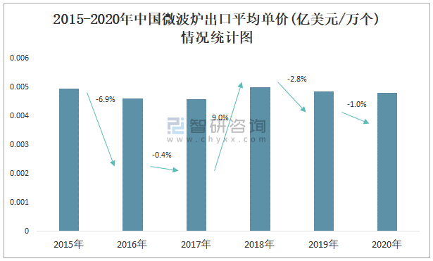 2015-2020年中國微波爐出口平均單價(億美元/萬個)情況統(tǒng)計圖