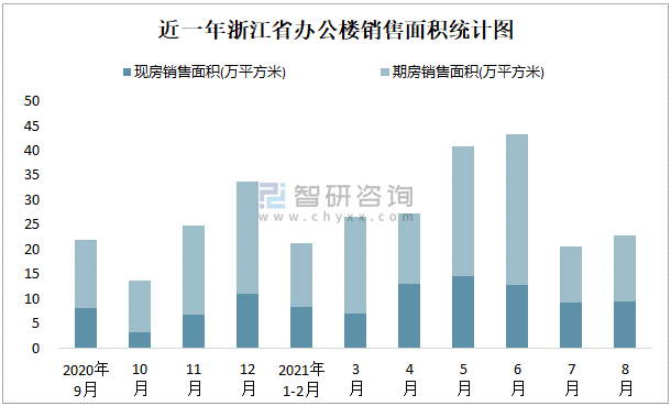 根據(jù)國家統(tǒng)計局數(shù)據(jù)可知:2021年8月浙江省辦公樓銷售面積為22.75萬平方米(其中銷售現(xiàn)房9.47萬平方米,期房13.28萬平方米);2021年1-8月浙江省辦公樓累計銷售面積為202.75萬平方米;近一年浙江省辦公樓期房銷售面積遠高于現(xiàn)房銷售面積。