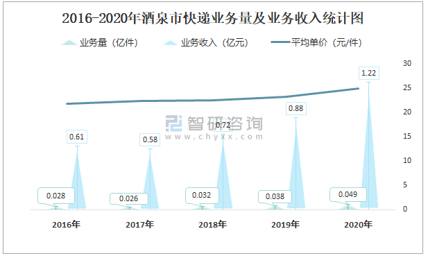 根據(jù)各省市郵政局數(shù)據(jù)可知:2021年8月酒泉市快遞業(yè)務量為62.98萬件,業(yè)務收入為1562.07萬元;2021年1-8月酒泉市快遞累計業(yè)務量為407.21萬件,同比增長46.99%,累計業(yè)務收入為11374.07萬元,同比增長69.83%;2016-2020年酒泉市快遞業(yè)務量與業(yè)務收入均總體呈現(xiàn)上升趨勢,平均單價逐年遞增。