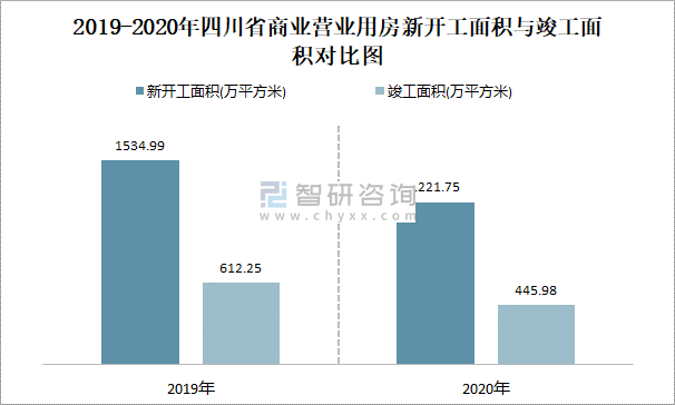 2019-2020年四川省商業營業用房新開工面積與竣工面積對比圖