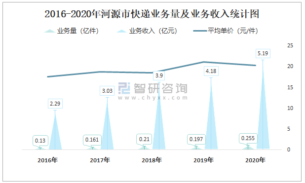 2016-2020年河源市快遞業(yè)務(wù)量及業(yè)務(wù)收入統(tǒng)計(jì)圖