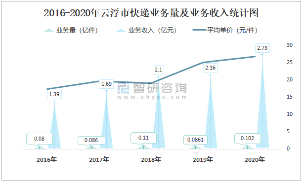 2016-2020年云浮市快遞業(yè)務(wù)量及業(yè)務(wù)收入統(tǒng)計(jì)圖