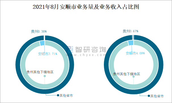 2021年8月安順市業(yè)務(wù)量及業(yè)務(wù)收入占比圖