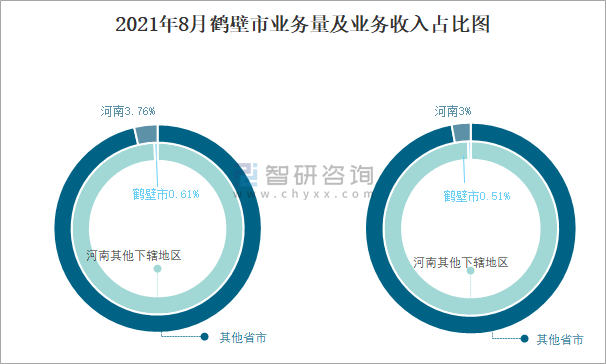2021年8月鶴壁市業(yè)務(wù)量及業(yè)務(wù)收入占比圖