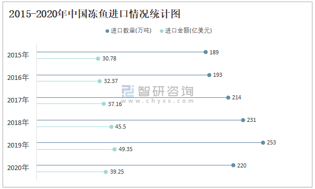 2015-2020年中國凍魚進口情況統計圖