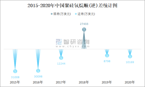 2015-2020年中國聚硅氧烷順(逆)差統(tǒng)計圖