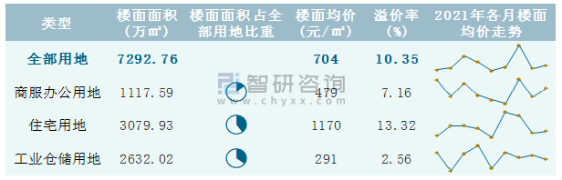 根據(jù)國(guó)信房地產(chǎn)信息網(wǎng)數(shù)據(jù)統(tǒng)計(jì)可知:2021年9月山西省全部用地出讓地面均價(jià)為1072元/㎡,其中住宅用地出讓地面均價(jià)最高(3111元/㎡),全部用地成交地面均價(jià)為1056元/㎡,其中住宅用地成交地面均價(jià)為3016元/㎡,高于商服辦公用地成交地面均價(jià);2021年1-9月山西省住宅用地樓面面積占其全部用地比重最多,為42.23%,溢價(jià)率為13.32%。