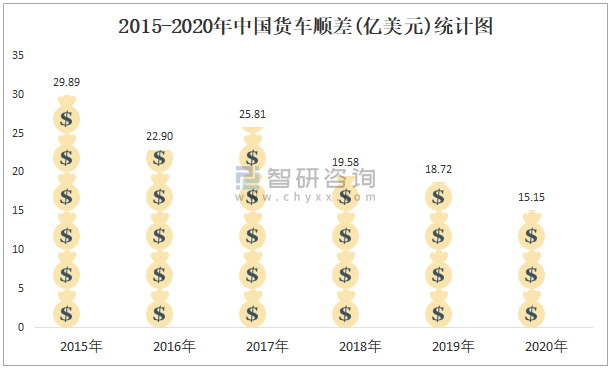 根據中國海關數據顯示:近一年中國貨車進口金額總體小于出口金額,進出口貿易全部為順差,順差規模在6月達到最大;2015-2020年中國貨車進出口順逆差以順差為主,順差規模總體呈縮減趨勢。