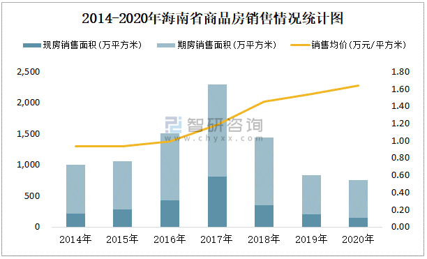 2014-2020年海南省商品房銷售情況統計圖