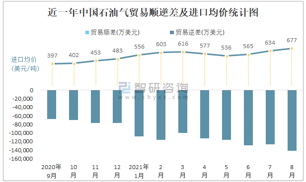 根據中國石油和化學工業聯合會數據顯示:2021年8月中國石油氣進口數量為215.2萬噸,出口數量為5.9萬噸;進口金額為145661萬美元,出口金額為4251萬美元;近一年中國石油氣出口總金額小于進口總金額,貿易逆差為主,8月進口均價677美元/噸。