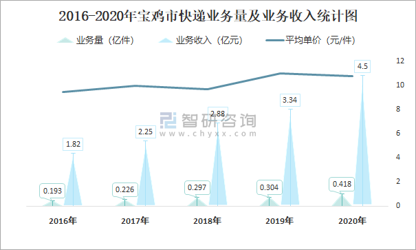 2016-2020年寶雞市快遞業(yè)務(wù)量及業(yè)務(wù)收入統(tǒng)計(jì)圖