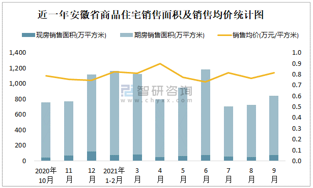 2021年9月安徽省銷售商品住宅839.49萬平方米 銷售均價約為0.81萬元/平方米