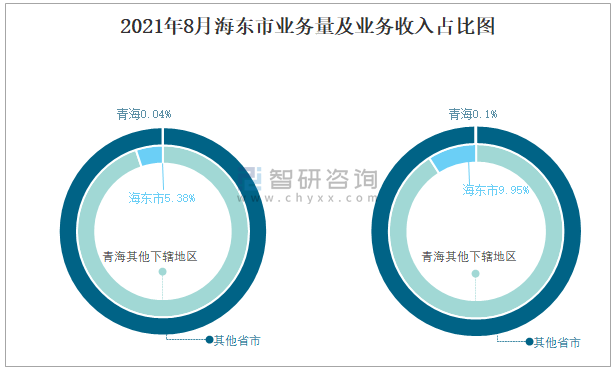 2021年8月海東市業(yè)務(wù)量及業(yè)務(wù)收入占比圖
