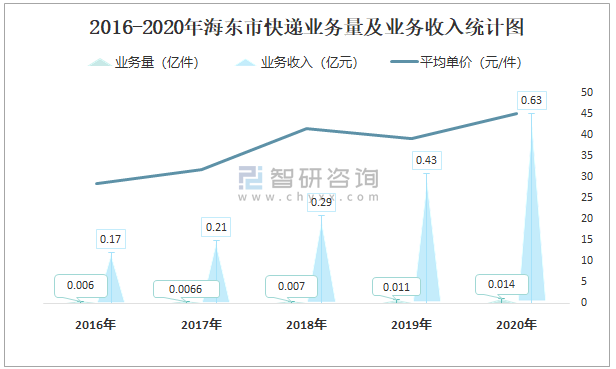 2016-2020年海東市快遞業(yè)務(wù)量及業(yè)務(wù)收入統(tǒng)計圖