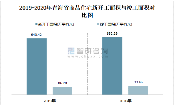 2019-2020年青海省商品住宅新開工面積與竣工面積對比圖