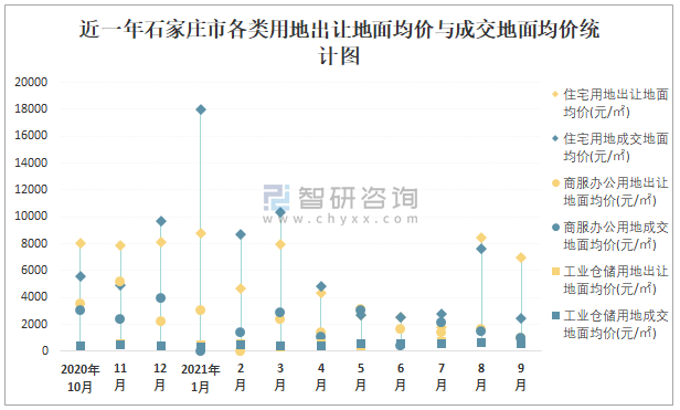 2021年1-9月石家莊市各類用地土地成交情況統計表