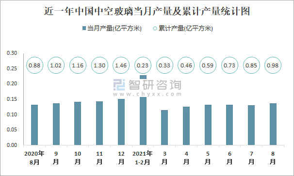 2021年1-8月中國中空玻璃產(chǎn)量為1億平方米 累計增長8.5%