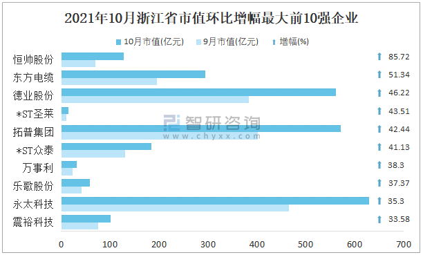 2021年10月浙江省市值環(huán)比增幅最大前10強(qiáng)企業(yè)