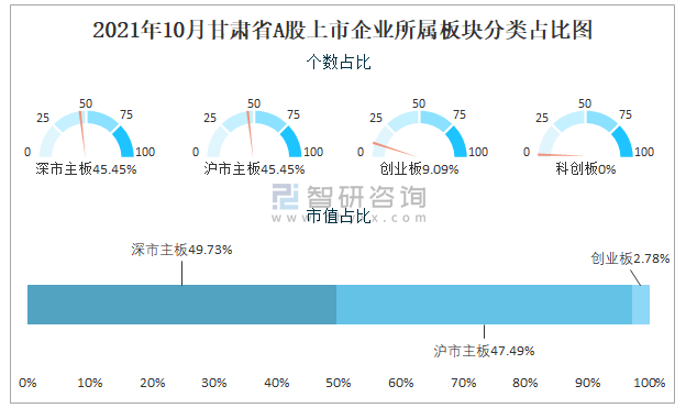 2021年10月甘肅省各地級市A股上市企業情況統計表