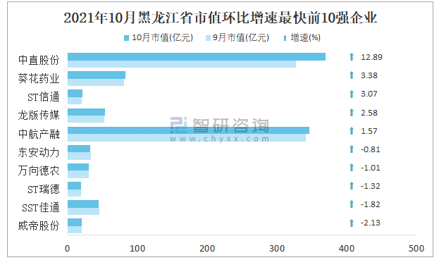 2021年10月黑龍江省市值環比增速最快前10強企業