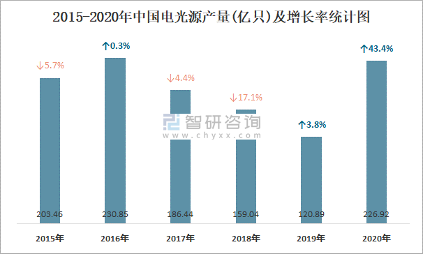 2015-2020年中國電光源產(chǎn)量及增長率統(tǒng)計圖