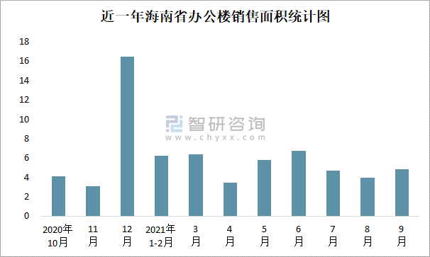 2021年9月海南省辦公樓銷售面積為4.82萬平方米(現房銷售面積占比3.53%)