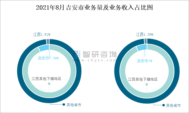 2021年8月吉安市業(yè)務(wù)量及業(yè)務(wù)收入占比圖