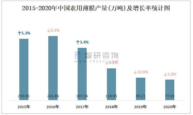 2015-2020年中國(guó)農(nóng)用薄膜產(chǎn)量及增長(zhǎng)率統(tǒng)計(jì)圖