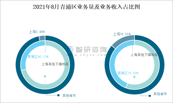 2021年8月青浦區業務量及業務收入占比圖