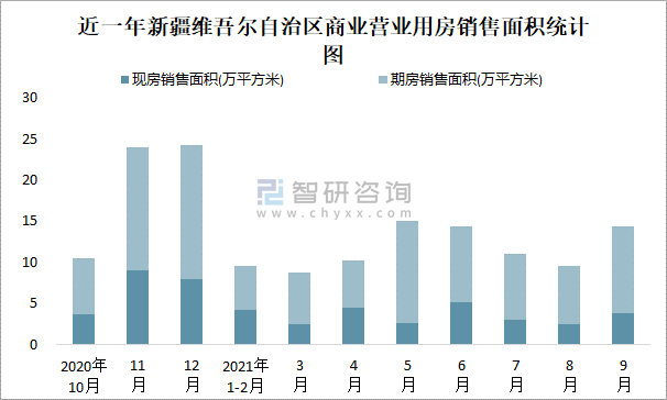 根據(jù)國(guó)家統(tǒng)計(jì)局?jǐn)?shù)據(jù)可知:2021年9月新疆維吾爾自治區(qū)商業(yè)營(yíng)業(yè)用房銷(xiāo)售面積為14.39萬(wàn)平方米(其中銷(xiāo)售現(xiàn)房3.81萬(wàn)平方米,期房10.58萬(wàn)平方米);2021年1-9月新疆維吾爾自治區(qū)商業(yè)營(yíng)業(yè)用房累計(jì)銷(xiāo)售面積為92.75萬(wàn)平方米;近一年新疆維吾爾自治區(qū)商業(yè)營(yíng)業(yè)用房期房銷(xiāo)售面積遠(yuǎn)高于現(xiàn)房銷(xiāo)售面積。