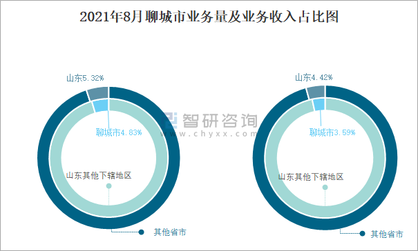 2021年8月聊城市業務量及業務收入占比圖