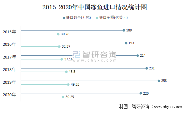 根據中國海關數據顯示:2015-2020年中國凍魚進口數量與進口金額均在2019年達到最高值,此后小幅度下滑;2015-2020年中國凍魚進口平均單價2018年增長速度最快,而2020年中國凍魚進口平均單價下降速度最快,下滑了8.5%。