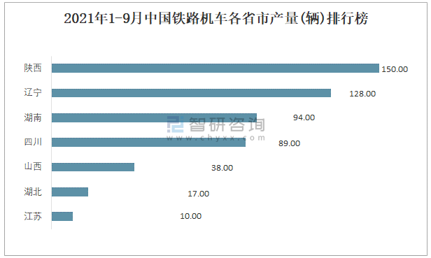 2021年1-9月中國鐵路機車各省市產量排行榜