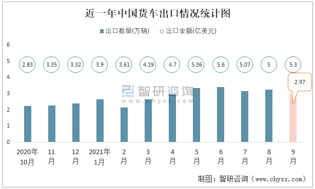 近一年中國貨車出口情況統計圖